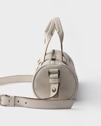 The soft shape of this top-handle bag has a sporty, pragmatic attitude. The silhouette is made of leather with a vintage finish that gives it a distinctive character defined by handles and shoulder strap for easy, versatile wear. Metal hardware from the archive completes the accessory with a utility spirit. - Product code: 1BB162_2HF2_F0K74_V_OOO - Leather handles - Detachable, adjustable leather shoulder strap. Maximum length 110 cm - Minimum length 90 cm - Maximum drop 55 cm - Minimum drop 45 cm - Metal hardware - Lettering logo embossed on the front - Zipper closure - Logo-print nylon lining with zipper pocket - Imported Height: 15cm Width: 34cm Length: 15cm MATERIALS Main material: Calfskin