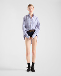 Blending architectural lines and fluidity, Prada redefines the classic tailored shirt with structured details and a renewed freedom of expression. - Product code: P488HG_16PF_F0013_S_OOO - Loose fit - Unlined garment - Shirt collar - Front button closure - Sleeves with shirt cuff - Fabric triangle logo - Straight hem - Internal drawstring detail at waist - Imported - The model is 179 cm tall and wears a size 38 Height: 85cm MATERIALS Main material: 100% cotton