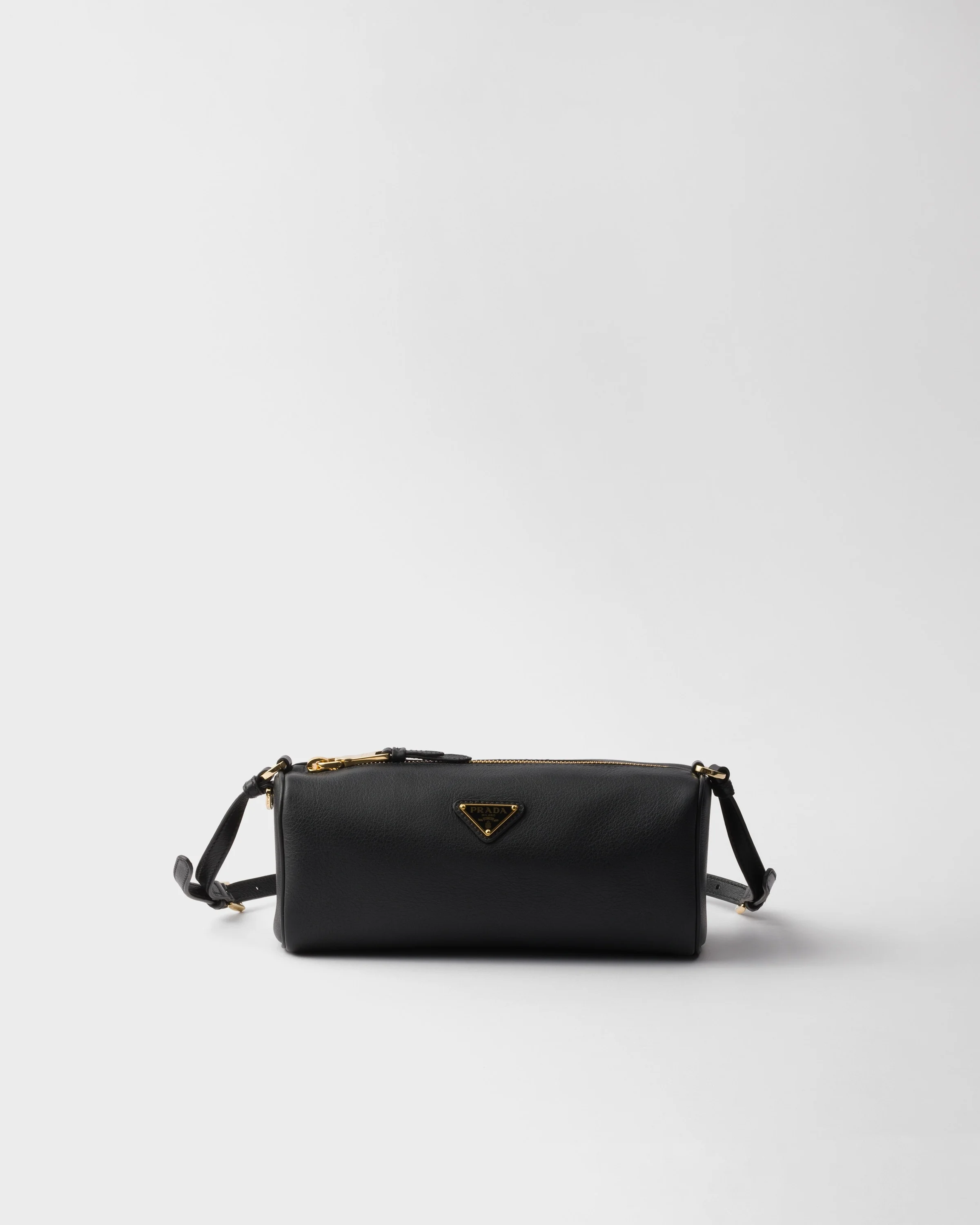 With its geometric shape, this leather pouch blends modern elegance and functionality. - Product code: 1BC239_2CYS_F0002_V_OVO - Zipper closure--Enameled metal triangle logo--Adjustable leather handle--Logo-print nylon lining with zipper pocket - Imported Height: 9cm Width: 22cm Length: 7.5cm MATERIALS Main material: Calfskin
