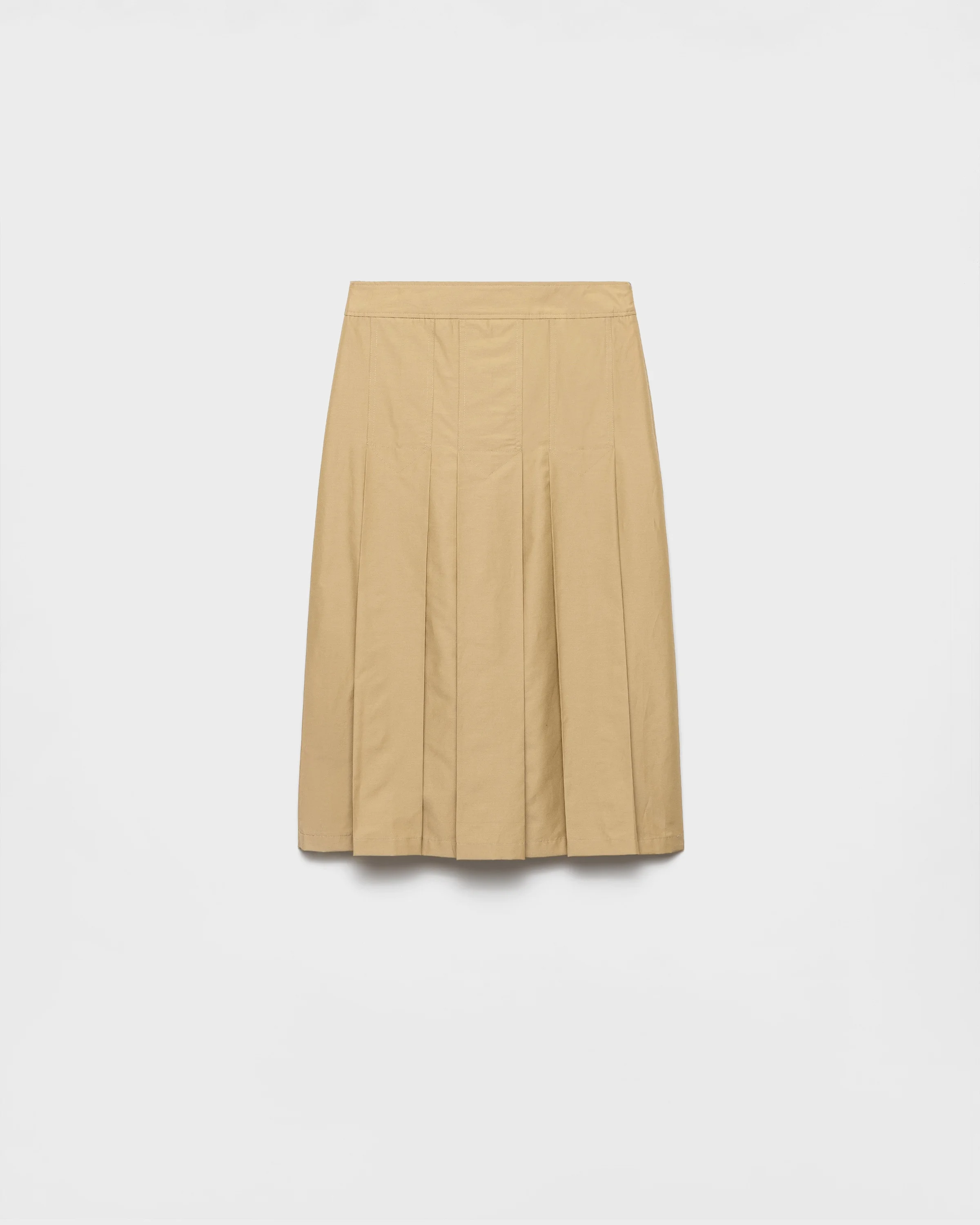 This style, a contemporary interpretation of the pleated skirt, is defined by its flared silhouette with low-rise waist. The technical fabric adds structure to the hybrid design that redefines the balance between sporty functionality and sophistication. - Product code: 21H011_13GP_F0594_S_OOO - Lined garment - Flared silhouette - Zipper closure - Conceptual triangle logo - Low-rise waist - Box pleats on the front - Kick pleat on the back - Imported - The model is 180 cm tall and wears a size 38 Height: 71cm MATERIALS Main material: 55% cotton 45% recycled polyamide