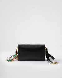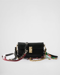 Contemporary and versatile, the new Prada Soft Sound bag is crafted from leather with a compact, two-compartment design, finished with gold-toned hardware. The accessory boasts various removable bag charms that decorate with a playful and unique touch. - Product code: 1BD379_2C6A_F0002_V_OO6 - Adjustable and detachable leather shoulder strap. Maximum length 90 cm - Minimum length 58 cm - Maximum drop 50 cm - Minimum drop 32 cm - Detachable bag charms - Metal hardware - Engraved lettering logo on clasp - Flap closure with snap buckles - Nappa leather lining with two compartments and two pockets, one with zipper - Imported Height: 13.5cm Width: 24cm Length: 6cm MATERIALS Main material: Calfskin