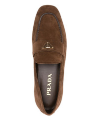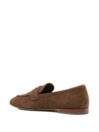 brown gold-tone logo plaque slip-on style almond toe - Color: BROWN - Made in: Italy - Designer Style ID: 1D147O F 010 103 F0324 Composition and care Lining Composition Calf Leather: 100.0%, Sole Composition Calf Leather: 100.0%, Outer Composition Calf Suede: 100.0%, Sole Composition Rubber: 100.0%