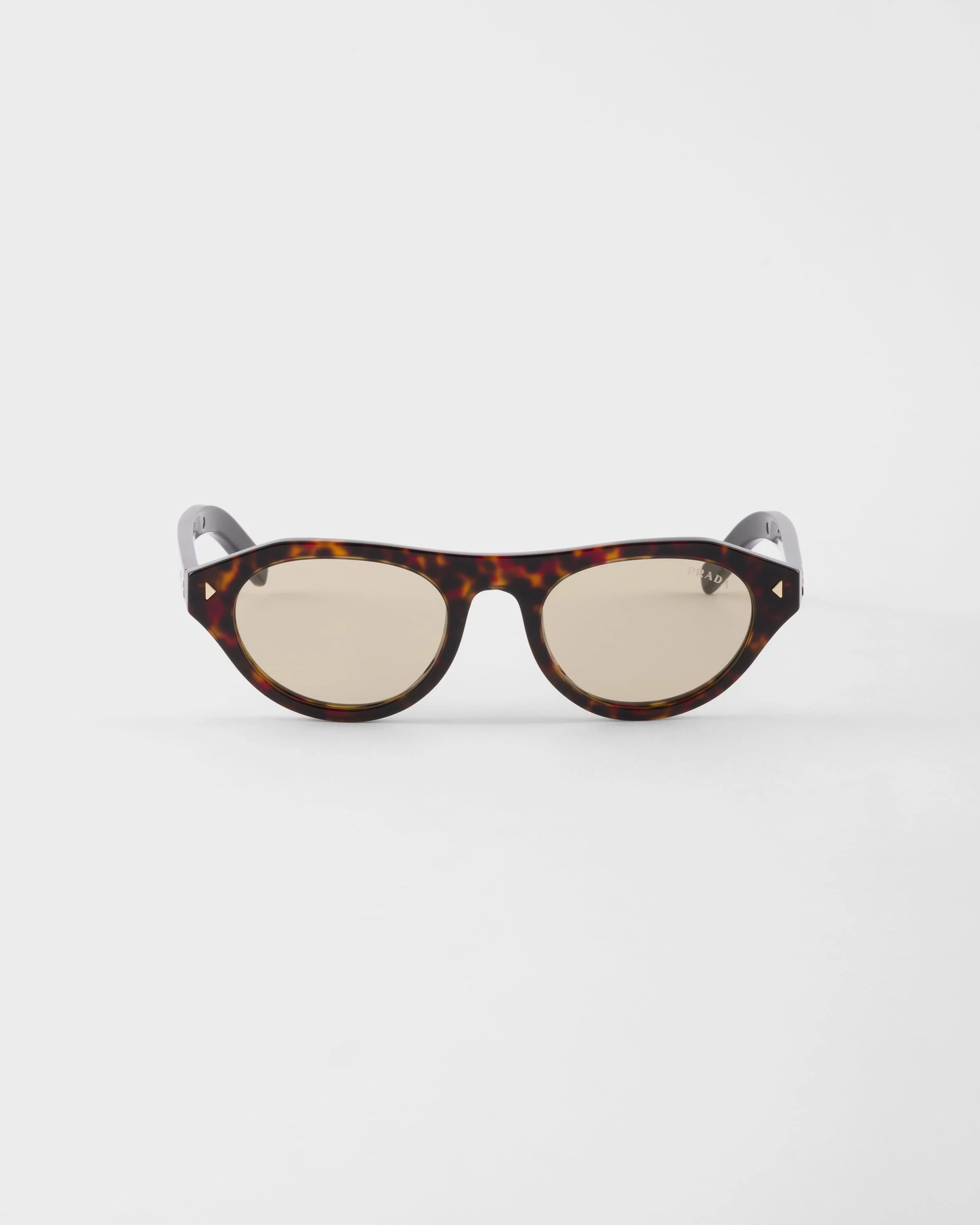 A sleek aesthetic meets the refined touch of details in these new Prada sunglasses. The acetate frame front features sophisticated triangular rivets while the temples highlight the iconic metal element enriched with the Prada lettering logo. - Product code: SPRB15_E17N_FE70R_C_051 - Acetate frame front - Color: Briarwood Tortoiseshell - Frame compatible with graduated lenses - 100% UVA / UVB protection - Crystal Lenses - Standard Fit - Lens-nose-temple measurement: 51-21-145 mm - Article comes with dedicated packaging - Other colors available - Imported MATERIALS Acetate