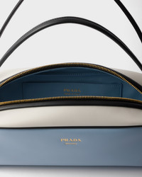 This soft leather bag stands out for its harmonious mix of classic and modern elements. The zipper closure adds a functional touch while the lettering logo completes it with a distinctive note. - Product code: 1BC249_ASK_F0FF3_V_OOO - Leather handles, drop 23 - Metal hardware - Lettering logo embossed on the front - Zipper closure - Nappa leather lining with patch pocket - Imported Height: 11.5cm Width: 28cm Length: 10cm MATERIALS Main material: Calfskin