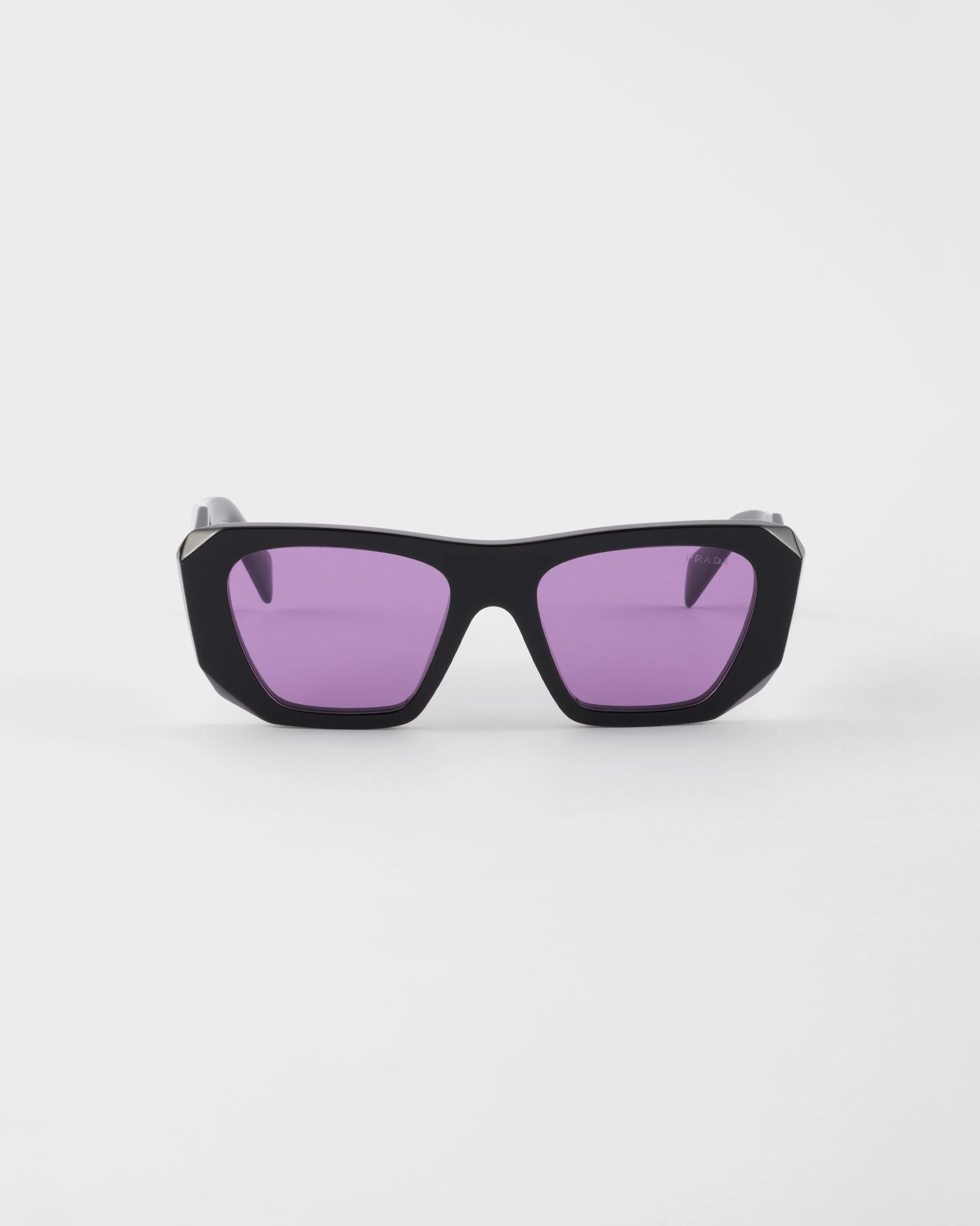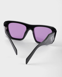 An oversized design and large volumes define these acetate sunglasses. The frame is characterized by the geometric front with clean lines and beveled outer rims. The three-dimensional workmanship on the temples is decorated with an iconographic interpretation of the traditional Prada triangle logo. - Product code: SPRB18_E16K_FE30G_C_053 - Acetate frame front - Color: Black - Frame not compatible with graduated lenses - 100% UVA / UVB protection - Standard fit - Lens-nose-temple measurements: 54-20-145 mm - Article comes with dedicated packaging - Other colors available - Imported MATERIALS Acetate