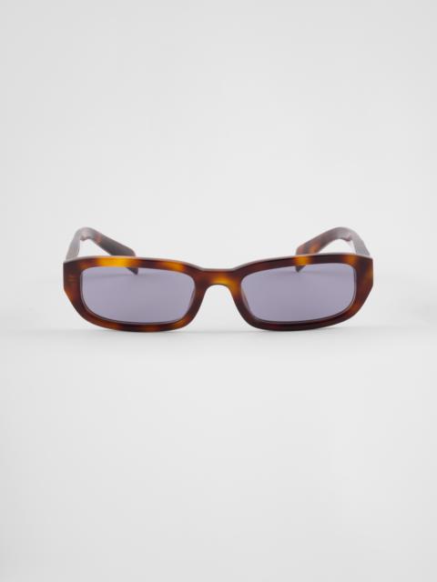 Acetate sunglasses characterized by faceted rims and geometric lines. The temples feature refined three-dimensional workmanship that highlights the iconic triangle logo. - Product code: SPRB06_E15W_FE03N_C_053 - Acetate frame front - Color: Classic Tortoiseshell - Frame compatible with graduated lenses - 100% UVA / UVB protection - Standard Fit - Lens-nose-temple measurement: 53-19-145 mm - Article comes with dedicated packaging - Other colors available - Imported MATERIALS Acetate