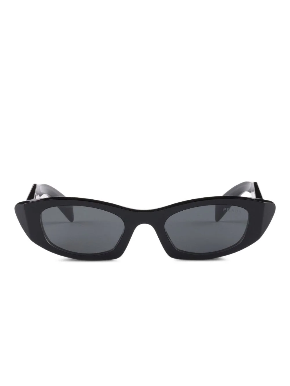 Prada Symbole sunglasses Highlights - Black - Cat-eye frame - Oversize arms - These glasses come with a protective case. Composition Acetate 100% SIZE & FIT Measurement Arm Length 5.7 in(14.5 cm) Bridge Width 0.82 in(2.1 cm) Lens Diameter 1.96 in(5 cm)