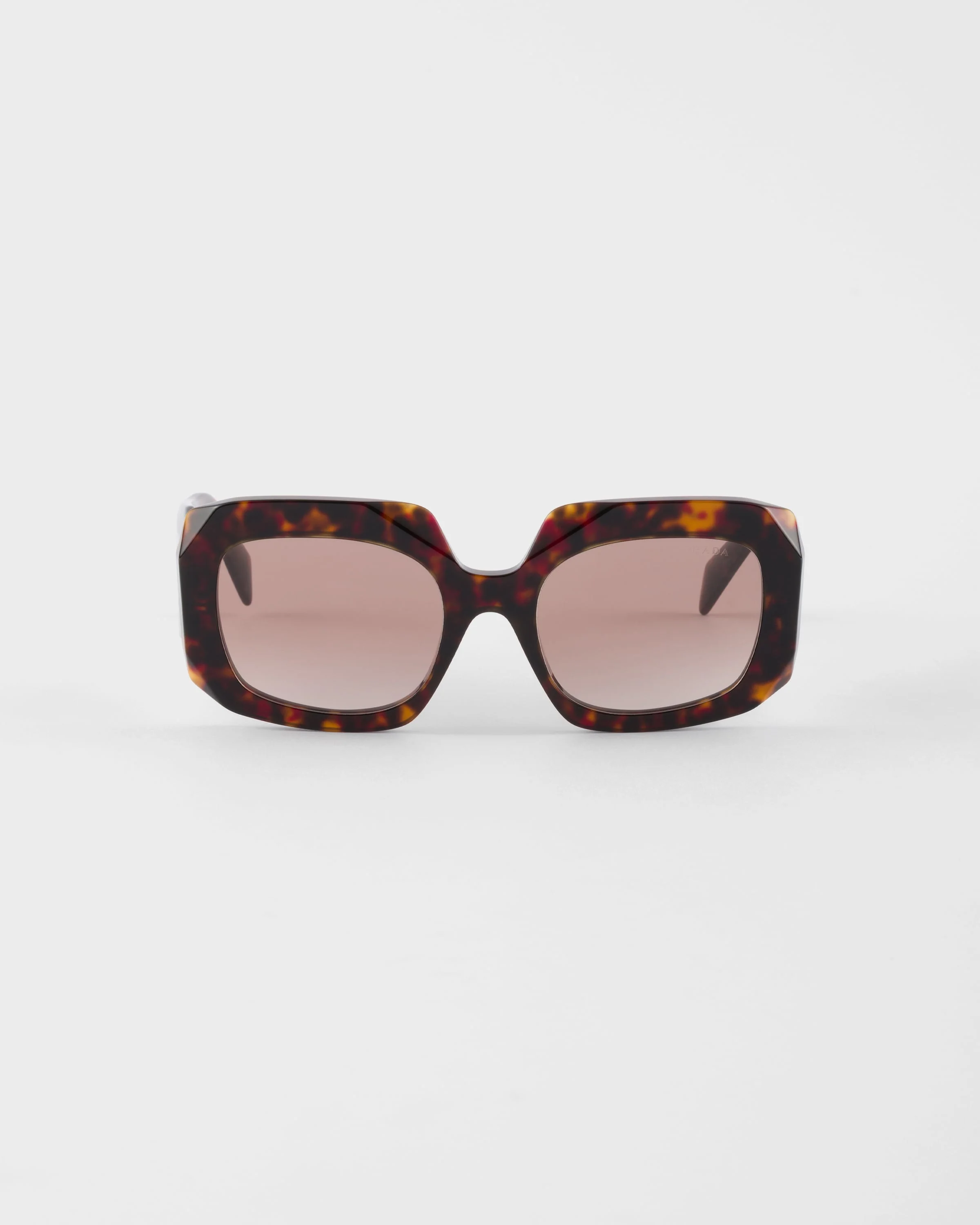 Acetate sunglasses with a geometric design and important volumes. The bold frame features an oversized square front defined by sharply beveled outer rims. The three-dimensional workmanship on the temples is decorated with an iconographic interpretation of the traditional Prada triangle logo. - Product code: SPRB23_E17N_FE10S_C_054 - Acetate frame front - Color: Briarwood Tortoiseshell - Frame not compatible with graduated lenses - 100% UVA / UVB protection - Standard fit - Lens-nose-temple measurements: 54-20-145 mm - Article comes with dedicated packaging - Other colors available - Imported MATERIALS Acetate