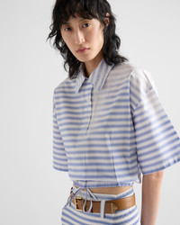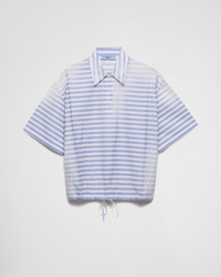 An oversized fit and a retro stripe motif inspired by the nautical world meet the tailored modernism that Prada creates in this design with timeless charm. - Product code: P965M_16QE_F0237_S_OOO - Loose fit - Unlined - Polo shirt collar - Front button closure - Short sleeves - Fabric triangle logo - Straight hem - Imported - The model is 180 cm tall and wears a size 38 Height: 60cm MATERIALS Main material: 100% cotton