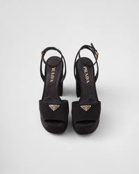 The iconic geometric shape of the triangle logo embellishes these suede sandals with sophisticated charm. The contemporary high-heeled platform silhouette is completed with refined ankle straps. - Product code: 1XP48B_008_F0002_F_115 - Straps with logo-engraved buckles - Enameled metal triangle logo - Leather and rubber sole with metal lettering logo - Suede-covered heel, height 115 mm - Suede-covered platform, height 40 mm - Imported MATERIALS Main material: Goatskin