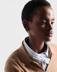The cashmere polo sweater with half-zipper reinterprets a classic with lightness and modernity. The slim-fit silhouette, three-quarter sleeves, and knit triangle logo define casual yet refined elegance. - Product code: P24R2P_17KC_F0040_S_OOO - Three-quarter sleeve - Plain knit - Slim-fit silhouette - Ribbed knit collar - Semi-raglan shoulder - Ribbed knit cuffs and hem - Knit triangle logo - Half-zipper closure on the front - Imported - The model is 177 cm tall and wears a size 38 Height: 42cm MATERIALS Main material: 100% cashmere