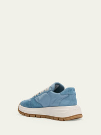 Designed with a sporty silhouette, the "Prax" sneakers by Prada are crafted from nylon and suede atop a chunky sole Signature logo triangle accent 1.75 in / 45 mm flat heel Round toe Laceup vamp Cushioned footbed Rubber outsole Made in Italy