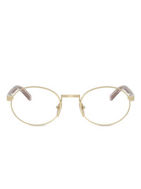 PRB55V oval-frame glasses Highlights - Gold-tone - Oval frame - Straight arms - Curved tips - All glasses from farfetch are sold as non-prescription frames. Composition Metal 100% SIZE & FIT Measurement Arm Length 5.7 in(14.5 cm) Bridge Width 0.82 in(2.1 cm) Lens Diameter 2.04 in(5.2 cm)