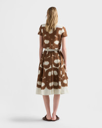 Pragmatic elegance and abstract motifs create a harmonious dialog according to the Prada vocabulary. This bowling shirt, an iconic garment of Prada collections, plays with functional details and new aesthetic proposals. - Product code: P412J_187Q_F0005_S_OOO - «Circle» print - Straight fit - Bowling collar - Front button closure - Short sleeves - Flapped patch pocket - Fabric triangle logo - Imported - The model is 180 cm tall and wears a size 38 Height: 45cm MATERIALS Main material: 100% Cotton