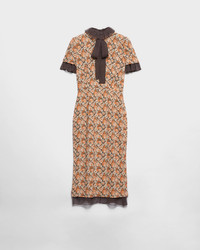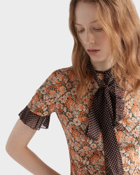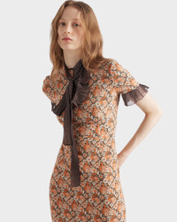 Two prints with vintage allure animate this georgette sheath dress. The dress is characterized by a floral motif in contrast with the polka-dot ruching and hem that add a light, romantic touch. - Product code: P3Q04_17MK_F0075_S_OOO - Sheath dress - Lined garment - Stand-up collar - Back zipper closure - Short sleeves with ruching - Straight hem - Imported - The model is 176 cm tall and wears a size 38 Height: 110cm MATERIALS Main material: 9% elastane 91% silk