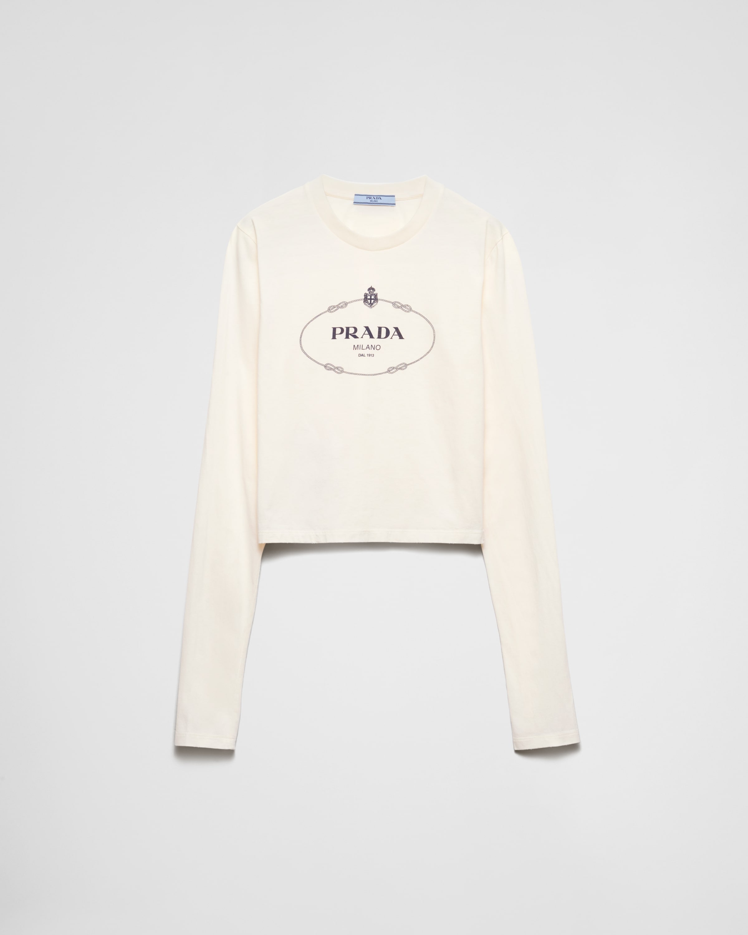 This jersey top has a long-sleeved silhouette with ribbed knit crew neck. The printed logo in a contrasting color enhances the style completed by the simple signature touch of the iconic fabric triangle logo. - Produktcode: 34665_15D3_F058L_S_OOO - «Savoy Logo» print - Boxy fit - Ribbed knit crew neck - Long sleeves - Fabric triangle logo with sartorial label - Eingefuhrt - The model is 179 cm tall and wears a size 38 Hohe: 50cm MATERIALS Hauptmaterial: 100% cotton
