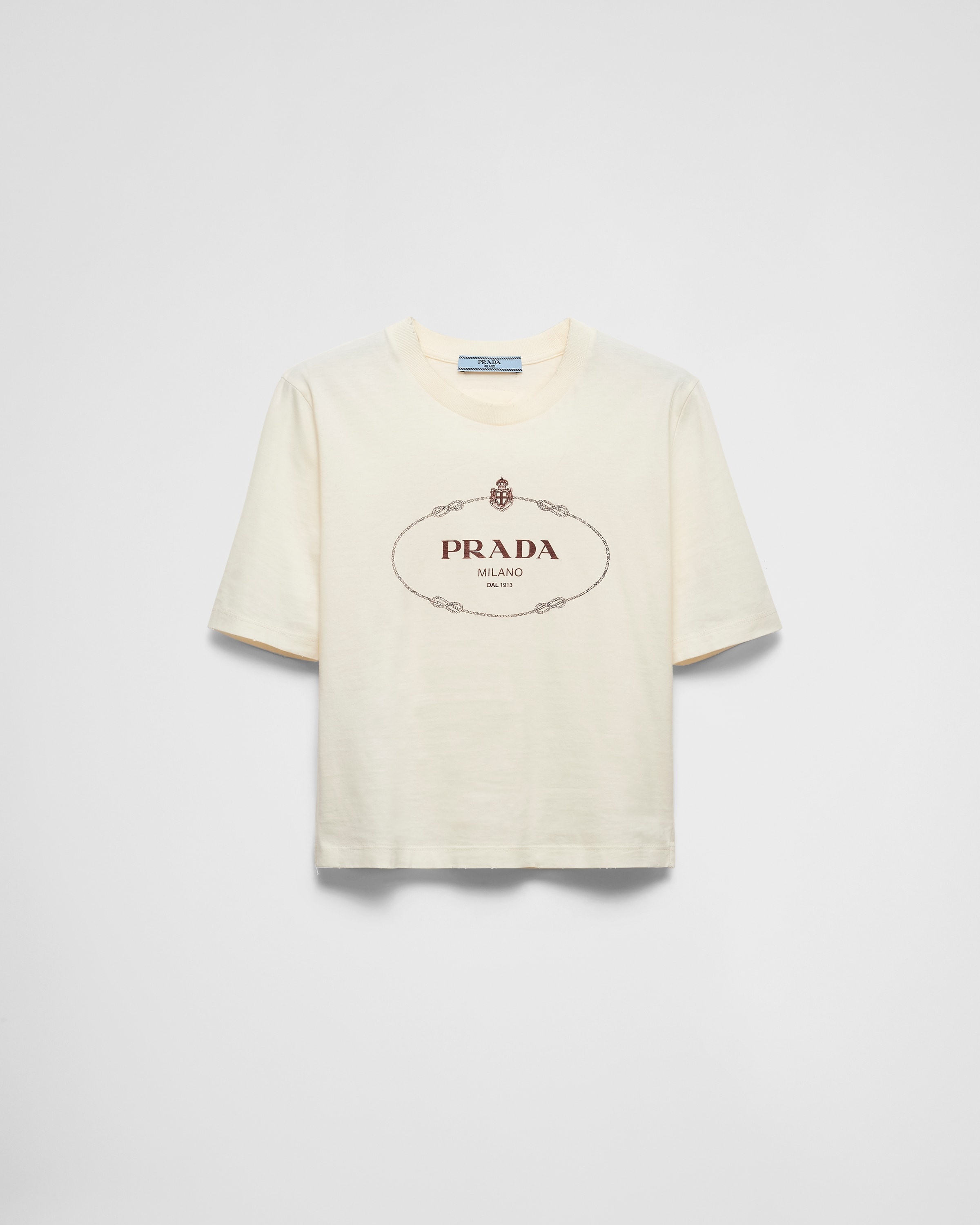 This jersey tee has a boxy short-sleeved silhouette with ribbed knit crew neck. The logo printed in a contrasting color enriches the style completed with the sleek signature of the emblematic fabric triangle logo. - Product code: 3549B_15D3_F0XPE_S_OOO - «Savoy logo» print - Boxy fit - Ribbed knit crew neck - Short sleeves - Fabric triangle logo with sartorial logo label - Imported - The model is 178 cm tall and wears a size 38 Height: 50cm MATERIALS Cotton