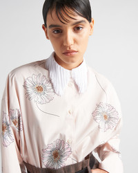Refined details animate the design of this poplin shirt with contemporary charm. The silhouette characterized by its oversized menswear cut is enhanced by a large floral print and a fringed collar in a contrasting color that introduces a dynamic element of movement and uniqueness. - Product code: P419H_14YO_F0924_S_OOO - «Gerbera» print - Menswear fit - Fringed collar - Front button closure - Sleeves with shirt cuffs - Fabric triangle logo - Imported - The model is 180 cm tall and wears a size 38 Height: 72cm MATERIALS Cotton