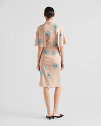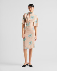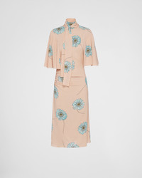 Printed sablé dress with scarf collar