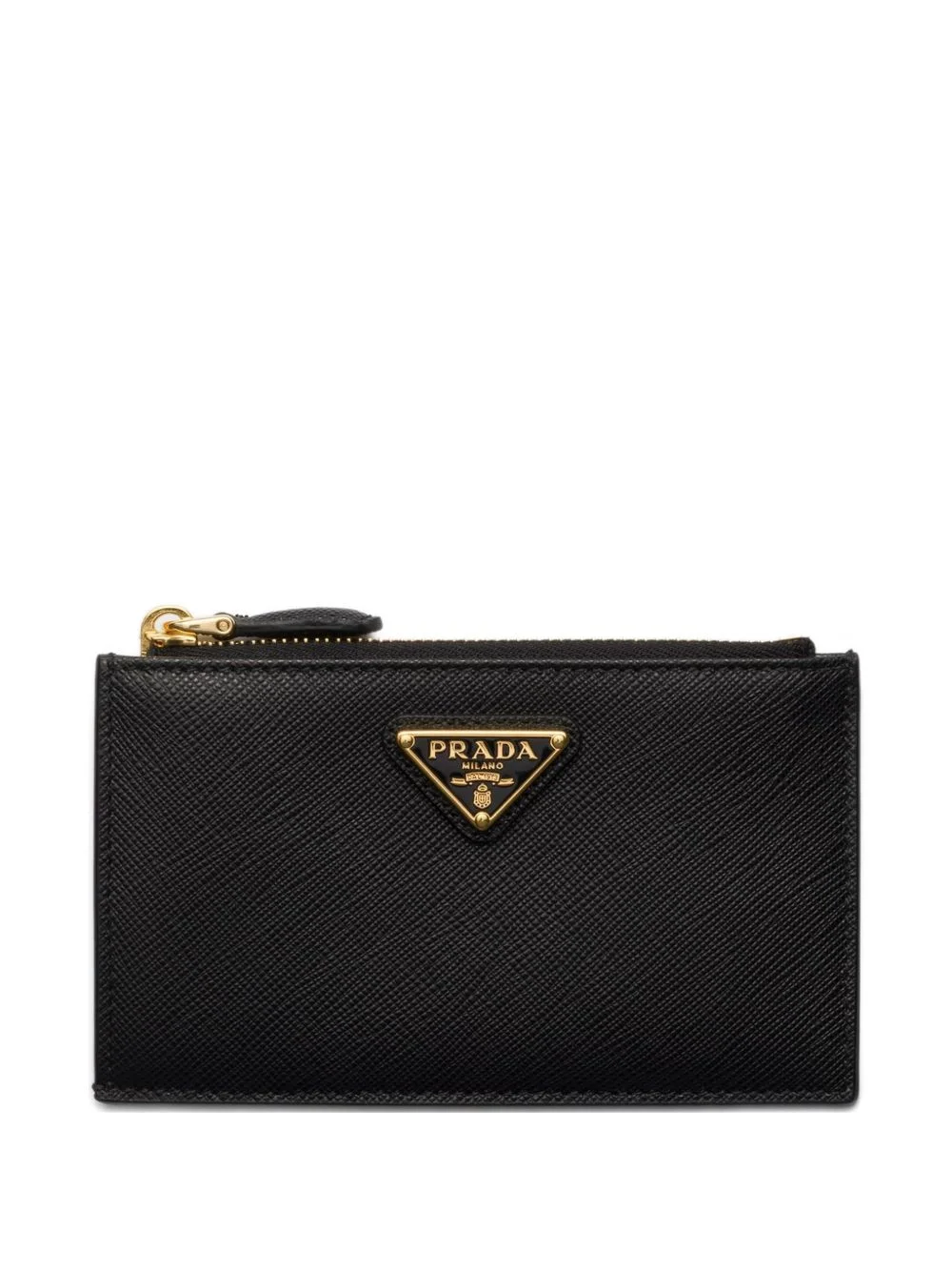Printed Saffiano leather card holder Highlights - Black - Printed - Metal triangle logo - Card slots - Zip closure - Leather Composition Saffiano Leather 100%