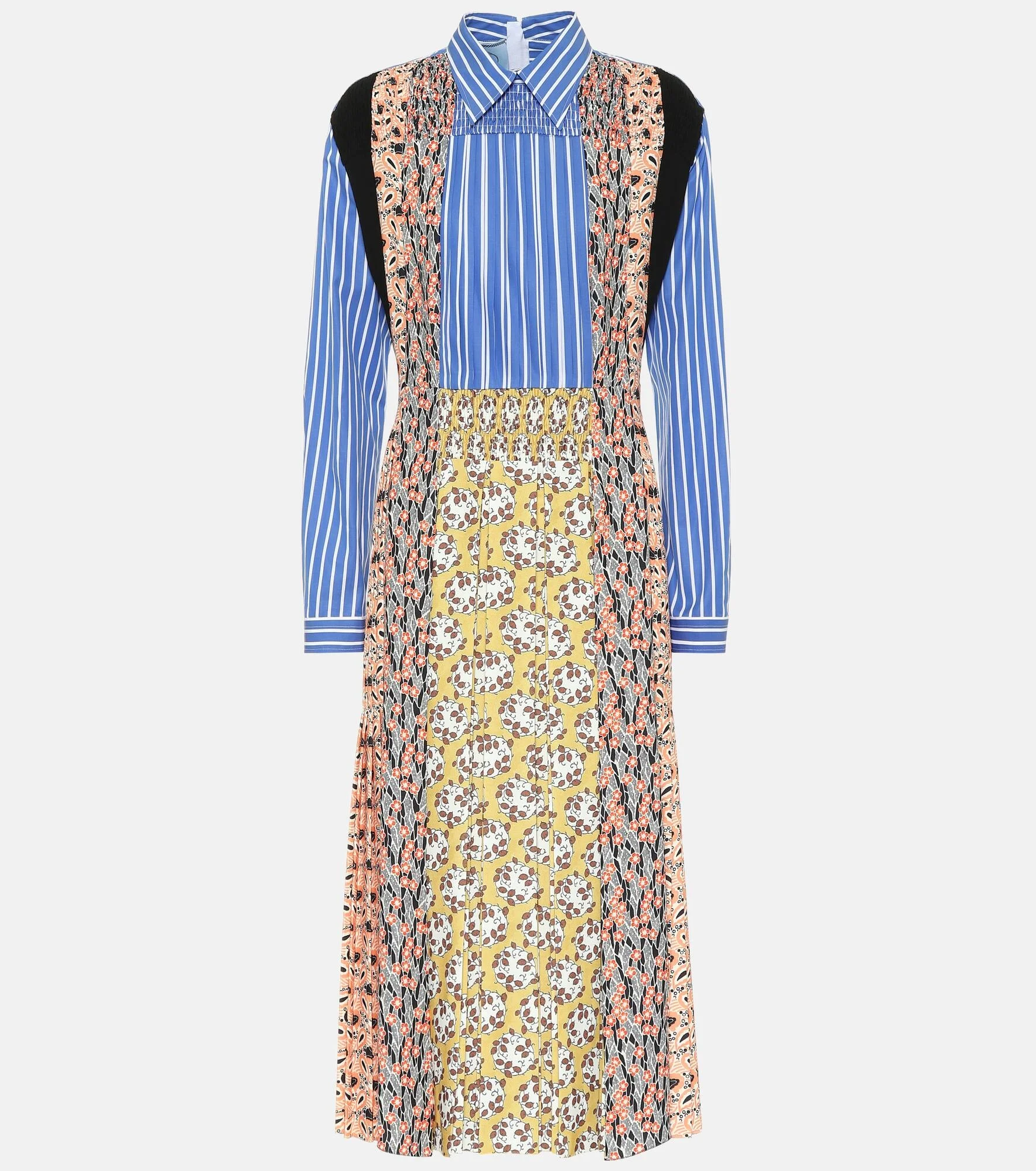 Embrace a colorful world with this multi-print shirt dress from Prada. Crafted in Italy, it gives the appearance of a striped cotton shirt that is covered in an apron-inspired floral midi skirt. Product Details - Made in Italy - Insert: 100% polyester - Buttoned cuffs - Designer color name: Vaniglia Ara - Closure: zipped back, hook fastening - Care instructions: dry clean - Material: 100% cotton - Material II: 100% polyester - Item number: P00441145 Size & Fit - Fits large to size - we recommend trying one size smaller - Dropped shoulders - Loose fit, elasticated waist - The model seen in the picture is 178cm-5'10" and wearing a size IT 38