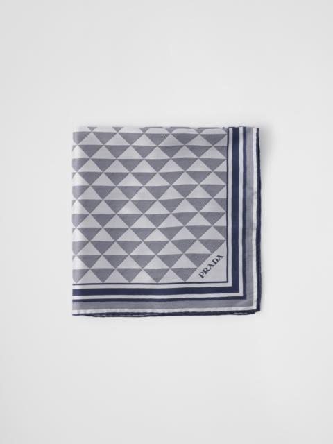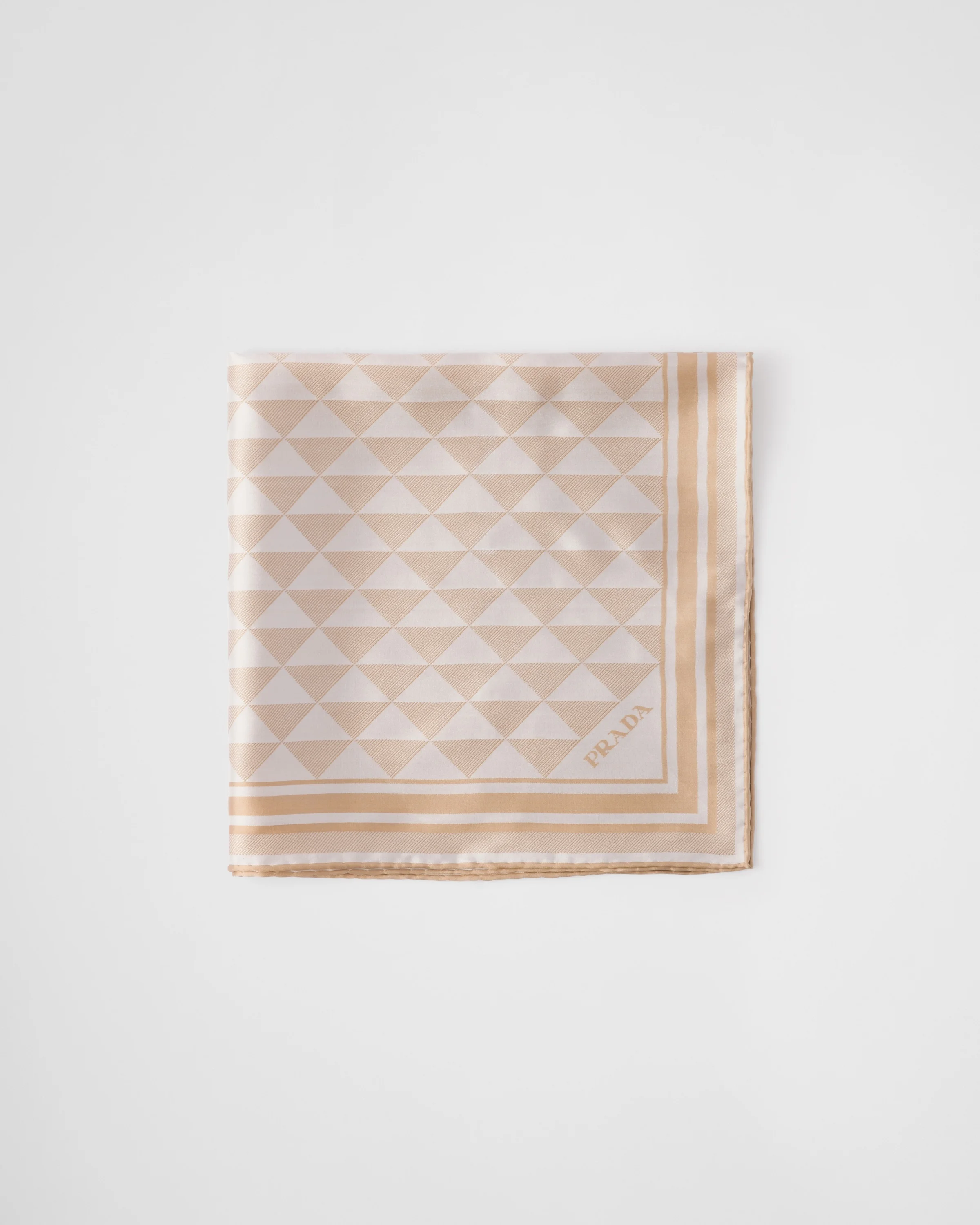 The Symbole print celebrates Prada's iconic triangle with a geometric, modernist motif that embellishes this refined silk scarf. - Product code: 1FF004_2C81_F045Y - Symbole print - Printed logo - Imported Height: 55cm Width: 55cm MATERIALS Main material: Silk