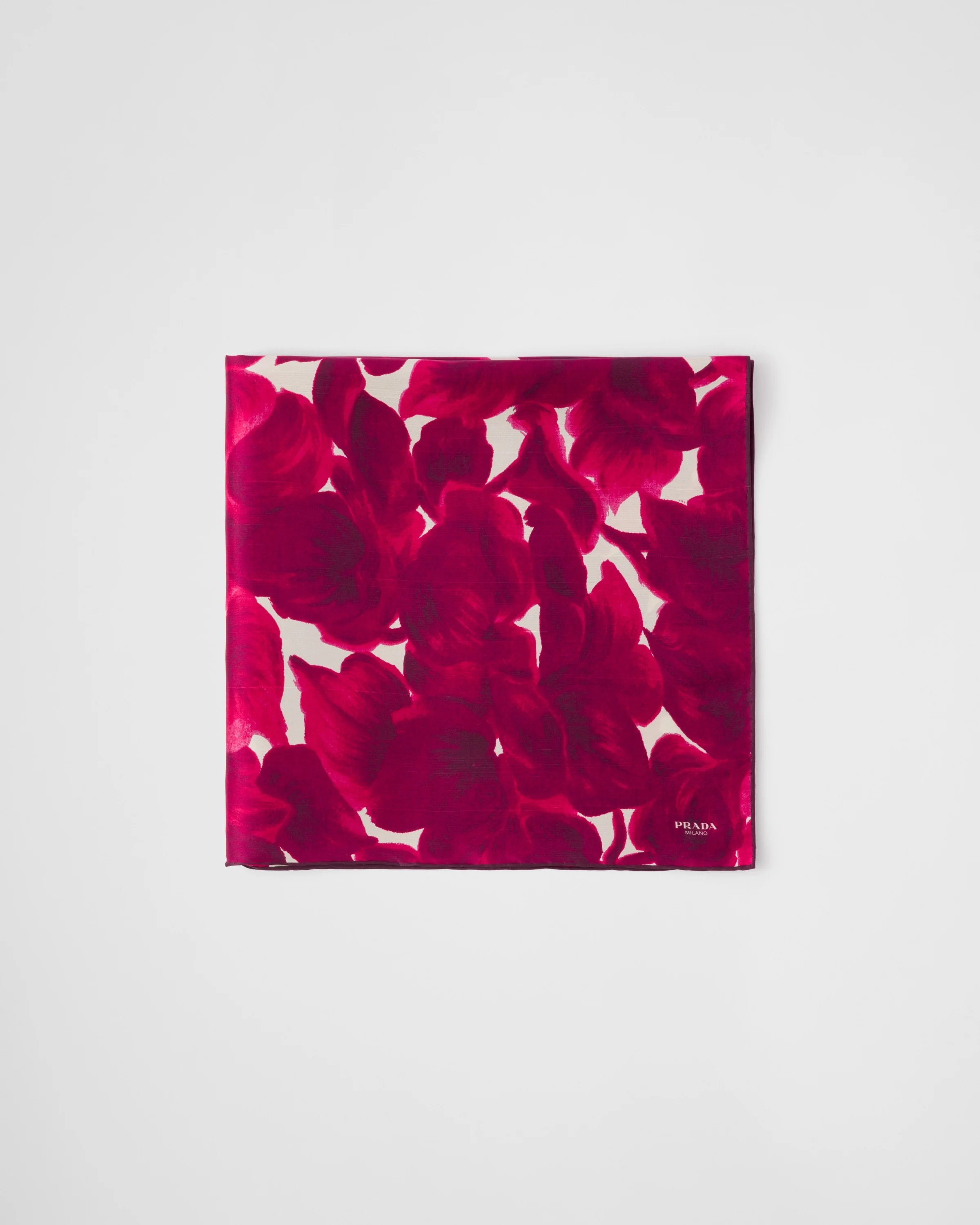 An abstract floral print enriches this refined silk shantung scarf decorated with the lettering logo. - 商品货号: 1FF041_2HH5_F0BXH - Flowers print - Printed logo - 产品标签信息 高度: 65cm 宽度: 65cm MATERIALS 主要材质: Silk