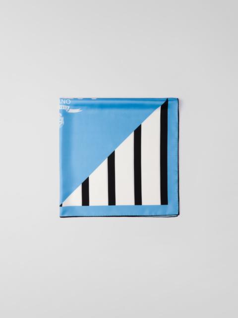 This elegant and feminine silk twill scarf is animated by a lively geometric print and completed by the lettering logo. - Product code: 1FF001_2C5L_F0P9S - "Lines" print - Printed logo - Imported Height: 90cm Width: 90cm MATERIALS Main material: Silk