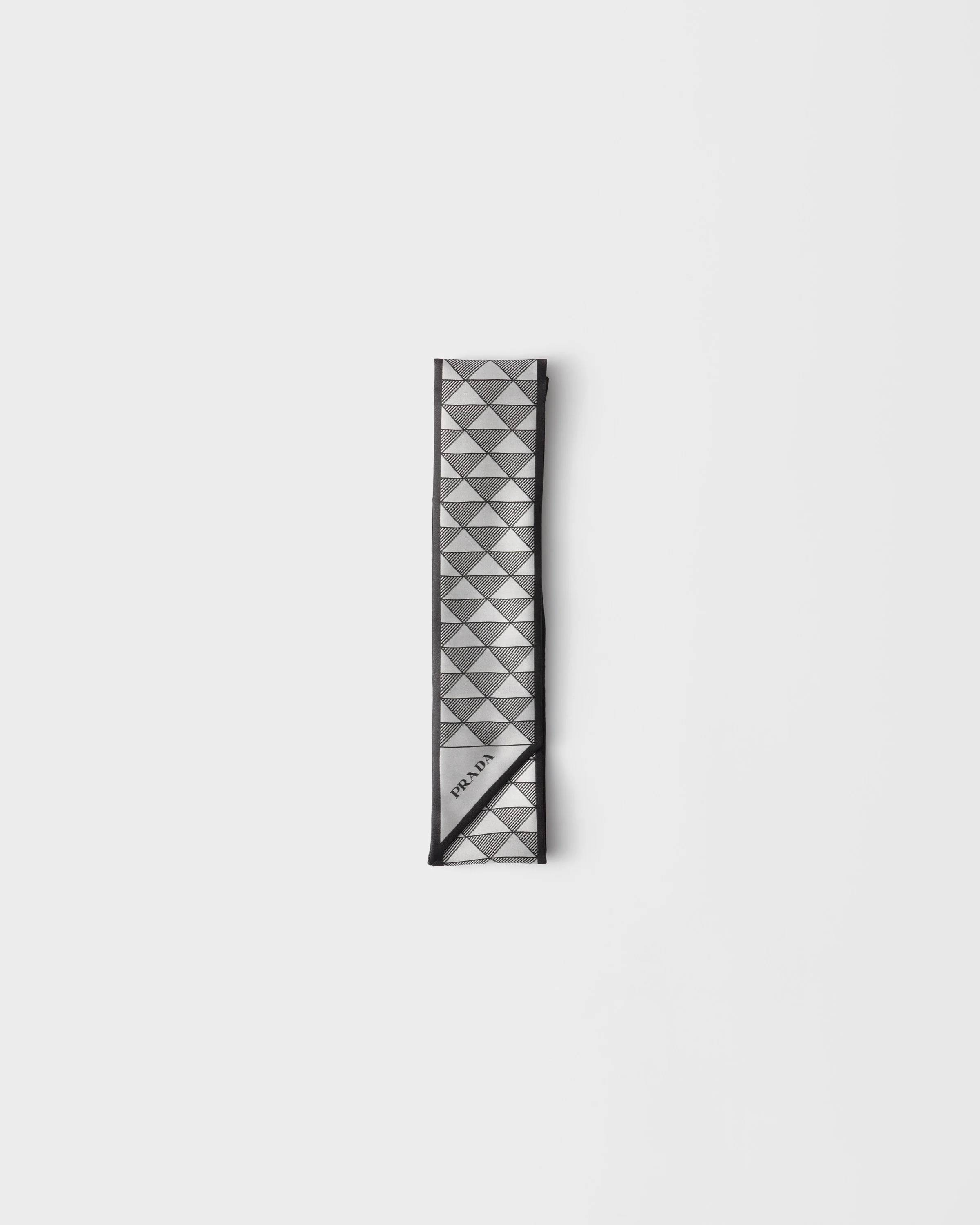 The Symbole print celebrates Prada's iconic triangle with a geometric, modernist motif that embellishes this refined silk skinny scarf. - Product code: 1FF008_2C81_F0002 - Symbole print - Printed logo - Imported Height: 85cm Width: 6cm MATERIALS Main material: Silk