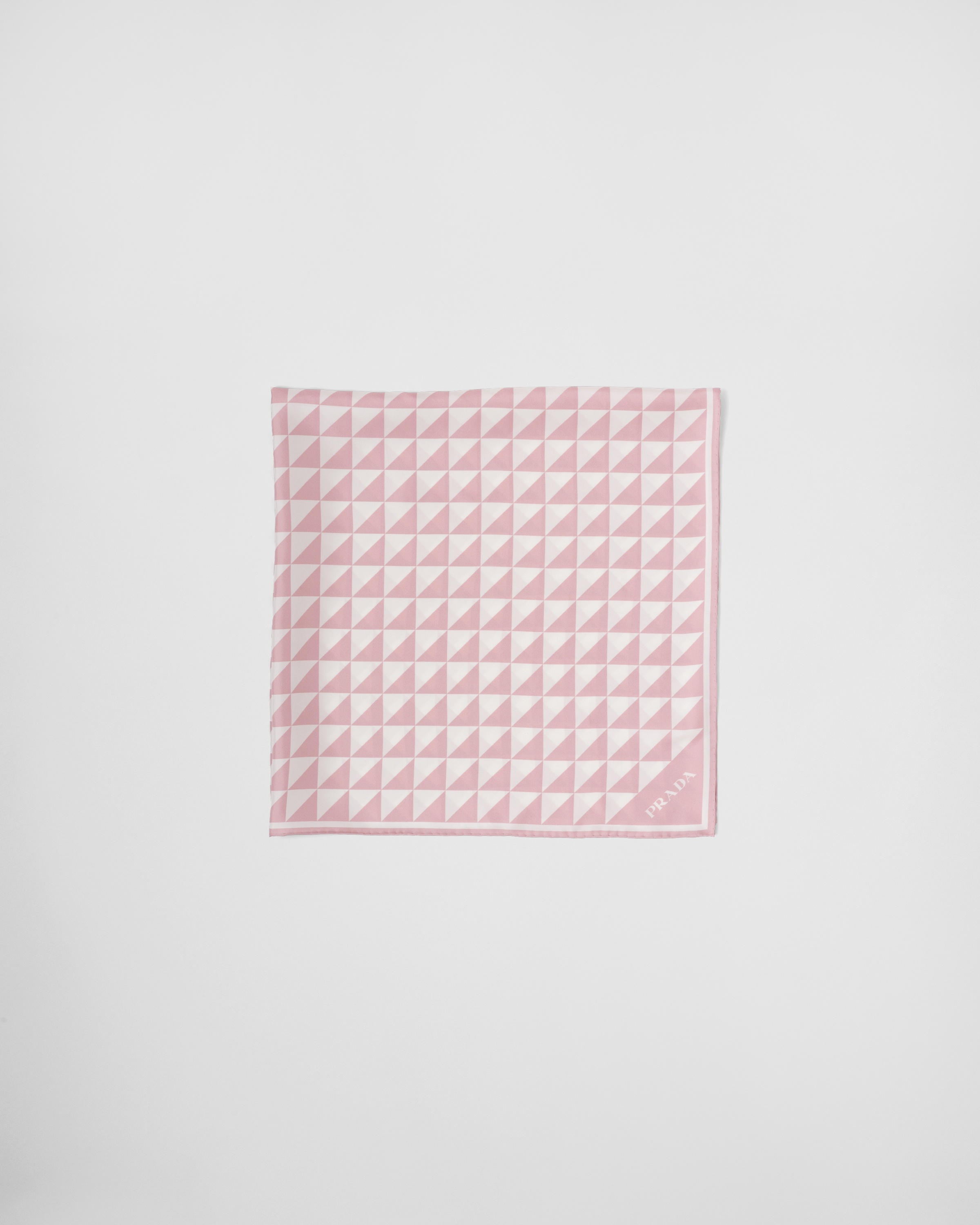 The triangle, Prada's iconic logo since 1913, is reimagined in always new ways, accenting this twill scarf with a harmonious color contrast. - Product code: 1FF001_2DTP_F0V4C - Triangle print - Printed lettering logo - Imported Height: 90cm Width: 90cm MATERIALS Main material: Silk