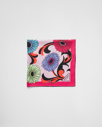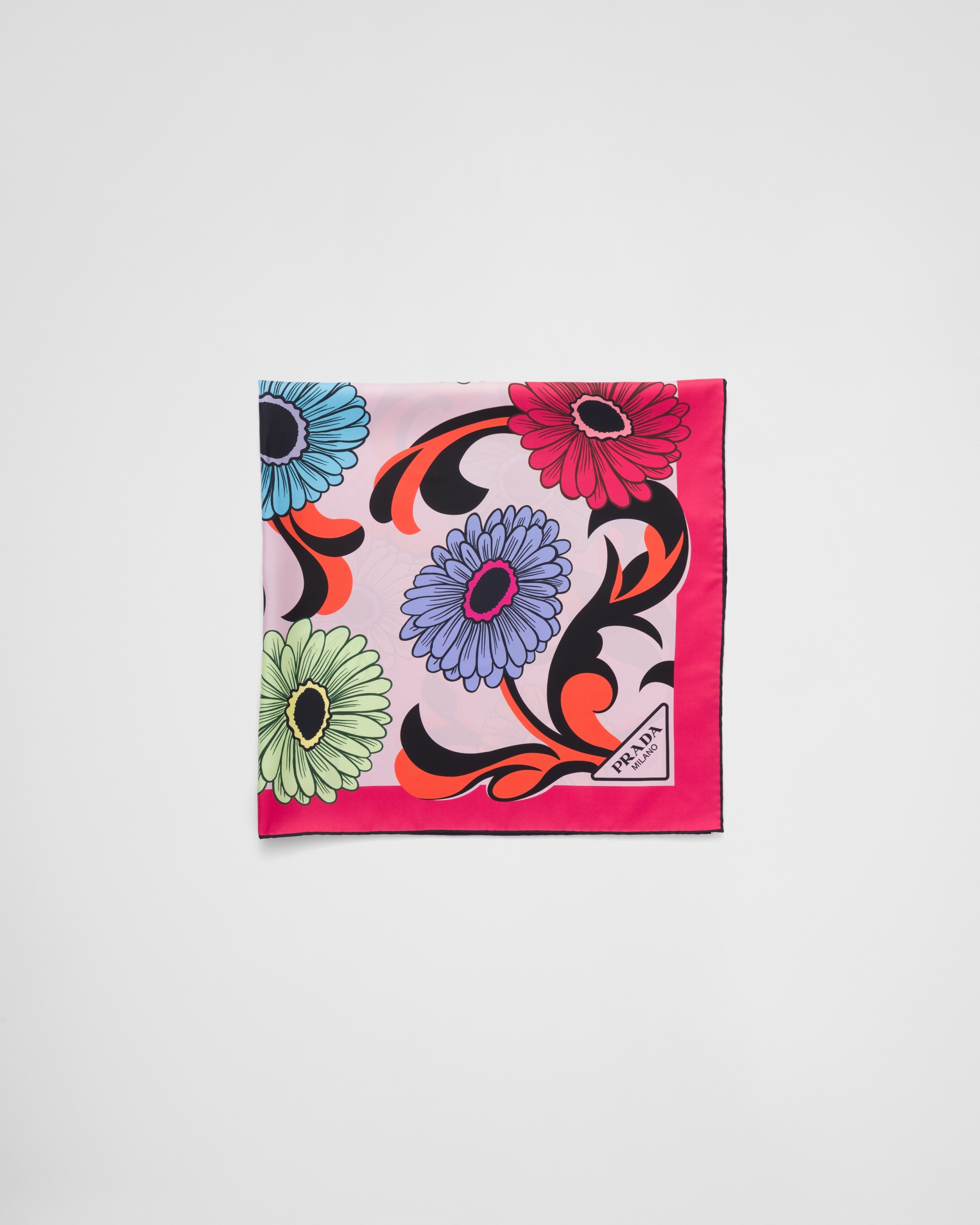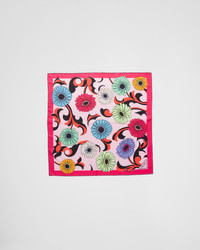 A motif that reinterprets the emblematic daisy with a pop-retro effect decorates this printed silk twill scarf. - Product code: 1FF001_2CLI_F0E18 - «Daisies» print - Printed logo - Imported Height: 90cm Width: 90cm MATERIALS Main material: Silk