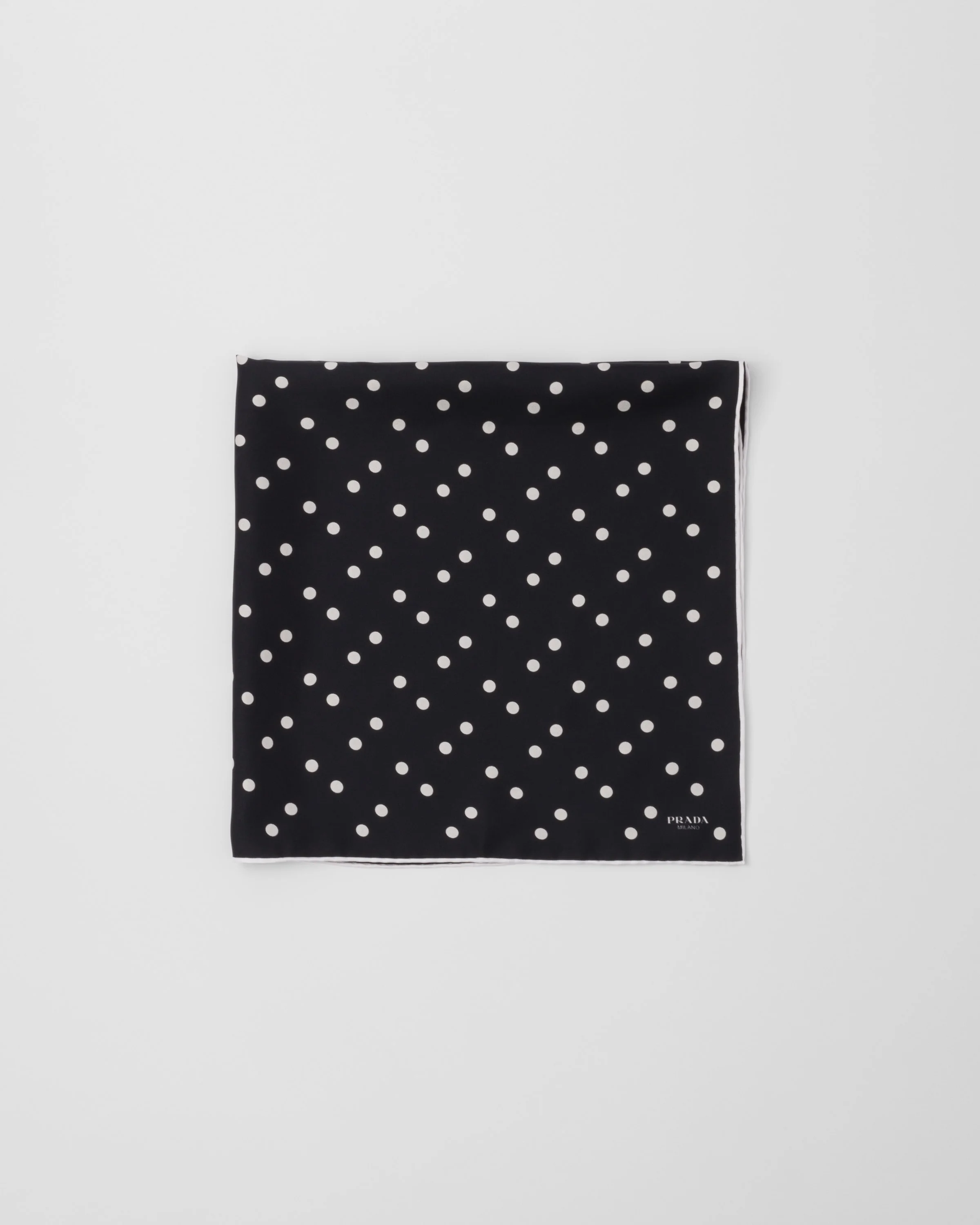 A sophisticated polka-dot print animates this fine silk twill scarf decorated with the lettering logo in a contrasting color. - Product code: 1FF041_2HH7_F0967 - Dots print - Lettering logo - Imported Height: 65cm Width: 65cm MATERIALS Main material: Silk