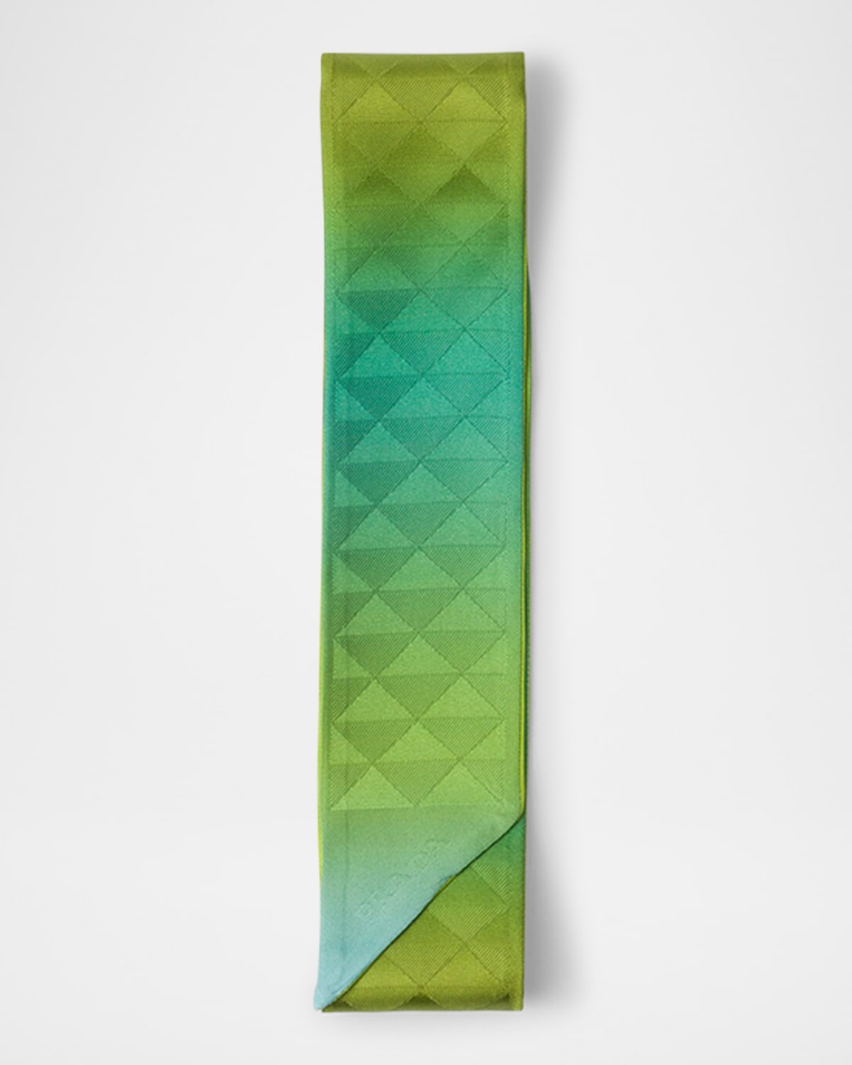 - Prada skinny scarf features the emblematic Symbole print reimagined with gradient hues - Approx. 2.36"W x 33.46"L - Printed logo lettering - Can be styled multiple ways - Silk - Imported