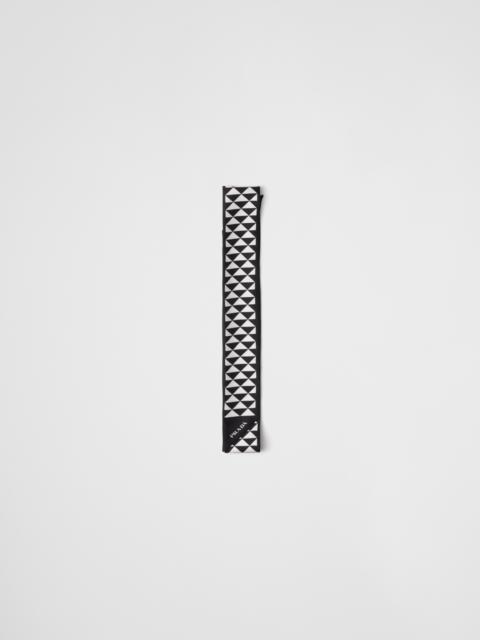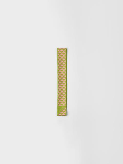 The emblematic Symbole print transforms the sleek lines of the Prada triangle into a modernist geometric pattern that embellishes this skinny scarf made of fine silk twill. - Product code: 1FF025_2DTP_F0967 - Symbole print - Printed logo - Imported Height: 135cm Width: 6cm MATERIALS Main material: Silk