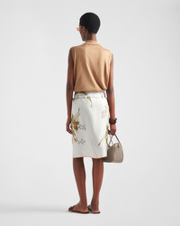 The refined elegance of scarves is reproduced on this silk twill skirt embellished with a sophisticated floral print. The new design features a light, sophisticated silhouette with straight lines, defined by a narrow belt and completed by an archive logo. - Product code: P168KK_15IW_F0934_S_OOO - «Gentian» print - Straight fit - Side closure with snaps and hook - Printed logo - Fabric belt detail - Imported - The model is 180 cm tall and wears a size 38 - Height: 68cm MATERIALS Silk
