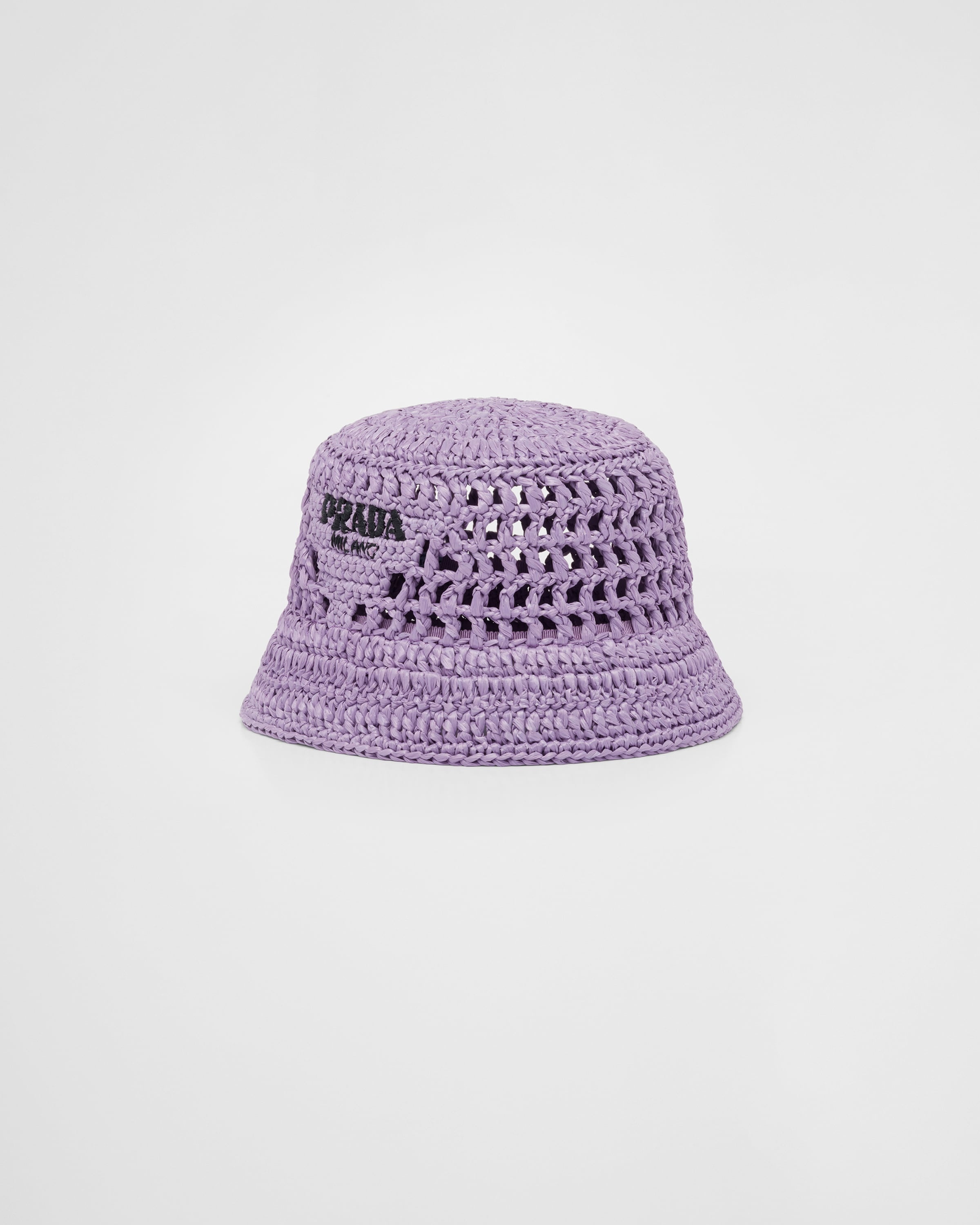 The streetwear-inspired bucket hat, one of Prada's iconic accessories, comes in a new crochet version with a summery mood. The lettering logo embroidered on the front embellishes the accessory. - Product code: 1HC137_2A2T_F027J - Embroidered lettering logo - Imported MATERIALS Fabric