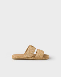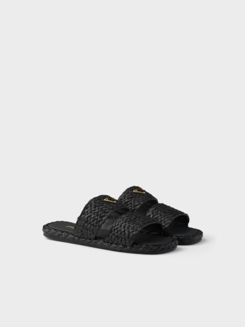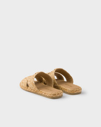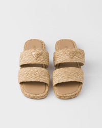 Refined weaving defines these raffia sandals with a sleek design, decorated with the emblematic enameled metal triangle logo. - Code du produit: 1XX749_027_F0018_F_020 - Enameled metal triangle logo - Rubber sole, 20 mm - Importe MATERIALS Matiere principale : Raffia