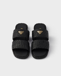 Refined weaving defines these raffia sandals with a sleek design, decorated with the emblematic enameled metal triangle logo. - Product code: 1XX749_027_F0002_F_020 - Enameled metal triangle logo - Rubber sole, 20 mm - Imported MATERIALS Main material: Raffia