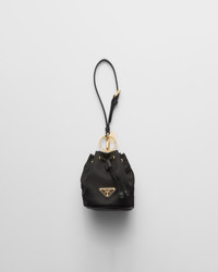 This mini-pouch bag charm, inspired by an archive design, is made of Re-Nylon, the sustainable evolution of a distinctive material of Prada collections. The style combines the functionality of regenerated nylon with refined details like the leather wristlet and gold-tone hardware. The enameled metal triangle logo enhances the accessory with an iconic touch. For sustainable care to preserve the product's characteristics and reduce microfiber shedding, we recommend not washing the item too often. Let the product air out after every use and have it dry cleaned at a specialized ecological dry cleaners. - Product code: 1TT202_2DMK_F0632 - Detachable leather wristlet - Enameled metal triangle logo - Imported Height: 10.5cm Width: 8.5cm MATERIALS Main material: Recycled polyamide