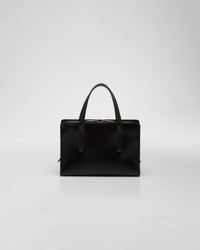 This handbag, a re-edition of an iconic Prada bag of 1995, is characterized by its elegant geometric silhouette with distinct, minimalist lines. Formal allure and practicality meet in its design with a central zipper closure, enhanced by the sophisticated accent of the screen-printed lettering logo. The accessory is made of fine brushed leather, an expression of the brand's expertise. - Product code: 1BA357_ZO6_F0002_V_OOO - Leather handles - Detachable, adjustable leather shoulder strap, length: 105 cm––Re-Edition removable leather keychain - Metal hardware - Hot-stamped front logo - Nylon logoed inner with zipped partition - Height: 15cm - Width: 22cm - Length: 6cm - Imported MATERIALS Leather