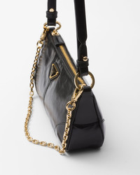 The Re-Edition of an iconic style from 2002, this shoulder bag summarizes Prada's codes in a versatile and refined silhouette that establishes a dialogue between the stylistic language of past and present. Made of leather with a refined shiny finish, the sophisticated, minimalist accessory can be worn from day to night, thanks to the elegant removable chain handle. Brightened by metal hardware, the design is completed by the leather keychain and enameled metal triangle logo. - Product code: 1BC221_2CYR_F0002_V_OOM - Brushed leather details - Removable chain handle - Shoulder strap - Detachable, adjustable leather handle, length: 70 cm - Maximum length 75 cm - Minimum length 65 cm - Maximum drop 35 cm- Minimum drop 30 cm - Removable leather key chain - Metal hardware - Enameled metal triangle logo on the front - Zipper closure - Logo-print nylon lining - Imported Height: 11.5cm Width: 26cm Length: 6cm MATERIALS Main material: Calfskin