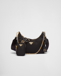 Inspired by the iconic mini hobo bag, the Prada Re-Edition 2005 shoulder bag is made of Re-Nylon: a regenerated nylon yarn (ECONYL®)produced from recycled, purified plastic trash collected in the ocean, fishing nets and textile waste fibers. This versatile bag with Saffiano leather trim comes with a detachable pouch attached to the shoulder strap. For sustainable care to preserve the product's characteristics and reduce microfiber shedding, we recommend not washing the item too often. Let the product air out after every use and have it dry cleaned at a specialized ecological dry cleaners. - Product code: 1BH204_R064_F0632_V_V9L - Saffiano trim - Removable chain handle - Detachable adjustable 85 cm logo-print woven nylon shoulder strap - Removable Re-Nylon zipper pouch with Re-Edition keychain - Metal hardware - Enameled metal triangle logo on the front - Zipper closure - Re-Nylon logo lining - Imported Height: 18cm Width: 22cm Length: 6cm MATERIALS Main material: Recycled polyamide