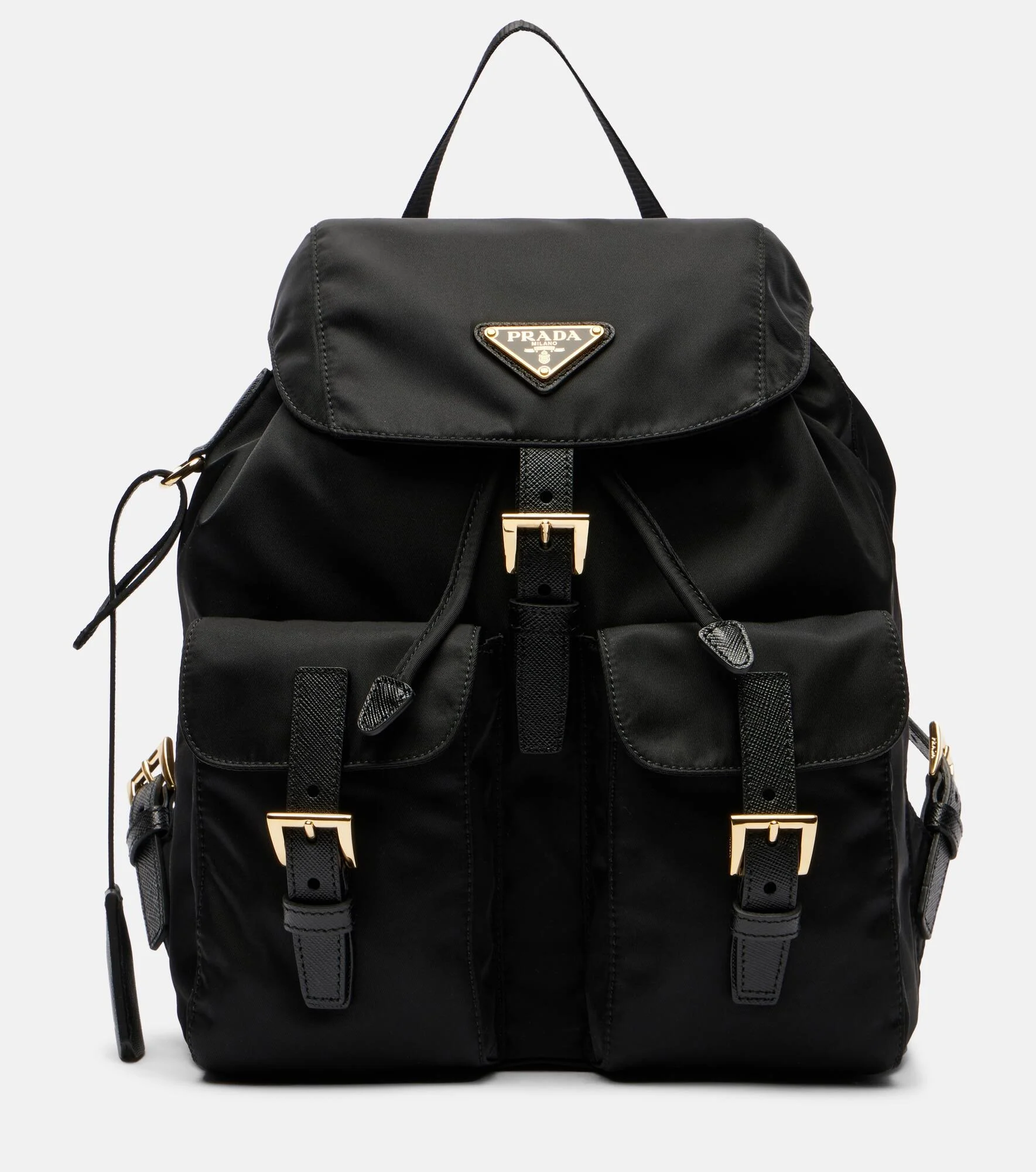 Prada's Re-Nylon 1978 backpack is a daily bag that won't lose its appeal. This Small style has multiple compartments sealed with Saffiano leather straps and comes with a coordinating pouch. Product Details - Material: nylon - Lining: nylon - Made in Italy - Designer color name: Black - Item color: black - Closure: magnetic fastening, buckle fastening , drawstring top - Internal details: single compartment, internal zipped and slot pockets - Adjustable shoulder straps - Detachable charm - Includes: dust bag - Item number: P01075931 Size & Fit - Height 27cm-10.5" - Width 23,5cm-9.5" - Depth 12cm-4.5" - Adjustable shoulder strap - Max. length shoulder strap 90cm-35.5"