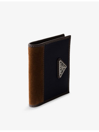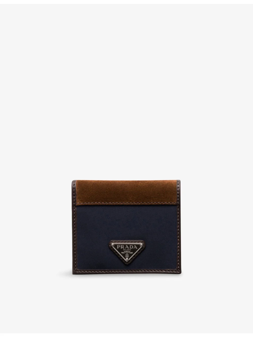 PRODUCT DETAILS - Prada Re-Nylon and leather wallet - 100% leather - Square silhouette, metal triangle at the front, eight card slots, one bill compartment, leather lining - Height 10cm, width 9cm - Specialist leather clean Ref: R04461384