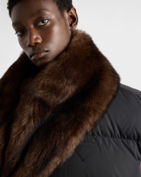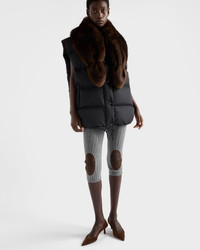 Unexpected combinations characterize this down vest, an expression of Prada's dual soul. The Re-Nylon garment has sporty volumes and oversized lines embellished with a soft shearling collar, in a blend of technical functionality and retro elegance. For sustainable care to preserve the product's characteristics and reduce microfiber shedding, we recommend not washing the item too often. Let the product air out after every use and follow the washing instructions on the label. - Product code: 29P303_17PM_F0002_S_OOO - Regular fit - Goose down padding - Removable shearling collar - Zipper and snap closure - Fabric triangle logo and sartorial logo label - Double welt zipper pockets - Drawstring hem - Internal pockets with button - Imported - The model is 180 cm tall and wears a size 38 Height: 76cm MATERIALS Main material: 100% Recycled Polyamide