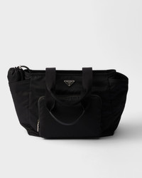 Equipped with several pockets and a removable baby bottle holder, this baby bag with shoulder strap is made of innovative Re-Nylon, a regenerated yarn produced from recycled, purified plastic trash collected in the ocean, fishing nets, and textile waste fibers. For sustainable care to preserve the product's characteristics and reduce microfiber shedding, we recommend not washing the item too often. Let the product air out after every use and have it dry cleaned at a specialized ecological dry cleaners. - Product code: 1BG102_RV44_F0002_V_OOO - Woven nylon handles - Detachable adjustable 100 cm logo-print woven nylon shoulder strap - Zipper pocket on the front and mat inside - Open side pockets, back zipper pocket - Metal hardware - Enameled metal triangle logo on the front - Zipper closure - Re-Nylon logo-print lining with three pockets, including one with zipper - With feet - Imported Height: 31cm Width: 36cm Length: 18cm MATERIALS Main material: Recycled polyamide