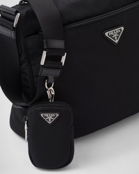 This sleek shoulder bag with roomy compartments and pockets is made of Re-Nylon: a regenerated nylon yarn produced from recycled, purified plastic materials collected in the ocean, fishing nets, and textile fibers. Steel-finish metal hardware characterizes the exterior, while the logo-print lining enhances the interior. For sustainable care to preserve the product's characteristics and reduce microfiber shedding, we recommend not washing the item too often. Let the product air out after every use and have it dry cleaned at a specialized ecological dry cleaners. - Product code: 1BC421_RV44_F0002_V_D1M - Adjustable woven shoulder strap, length: 95 cm - Removable Re-Nylon pouch with zipper closure - Zipped pocket - Metal hardware - Pocket with enameled metal triangle logo - Zipper closure - Re-Nylon logo lining, two inner pockets, one with zipper - Imported Height: 24cm Width: 29.5cm Length: 9cm MATERIALS Main material: Recycled polyamide