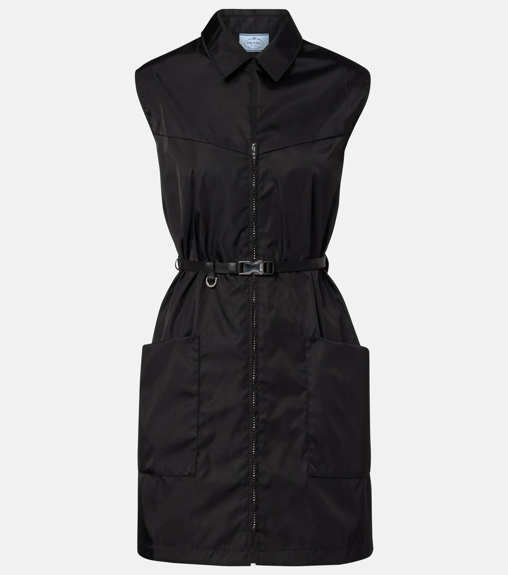 Offering a sustainable take on a signature fabric, Prada’s Re-Nylon products are made from regenerated ocean plastic waste. This zip-up minidress is crafted from the distinctive material and features two cargo pockets and an adjustable buckle belt at the waist. Product Details - Material: 100% polyamide (recycled) - Care instructions: machine wash at 30 degrees - Made in Italy - Color: black - Designer color name: Nero - Material II: 100% polyamide - Details: 100% calf leather - Contains non-textile parts of animal origin - Detachable belt - Collar: classic (Straight point) - Pockets: patch pockets - Closure: button fastening, zipped front - Item number: P01151390 Size & Fit - True to size - Loose fit, comes with belt - Non-stretchy fabric - The model seen in the picture is 178cm-5'10" and wearing a size IT 40
