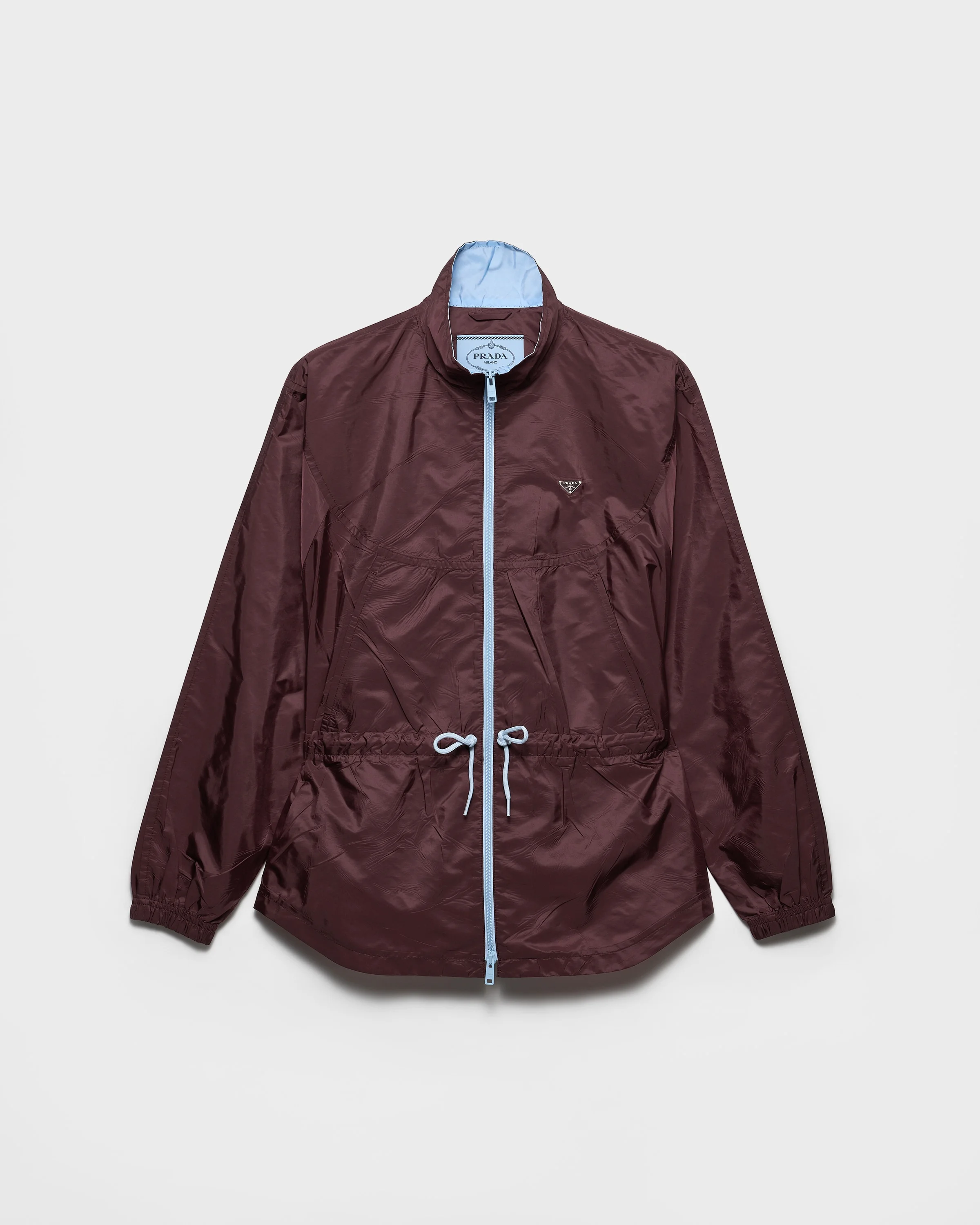 Understated and contemporary, with contrasting details and sleek lines. The triangle logo and fine tailoring express timeless elegance. - Product code: 292332_1WQ9_F0403_S_BAO - Unlined - Stand-up collar - Long sleeves - Elasticized cuff - Zipper closure - Angled pockets - Enameled metal triangle logo - Pressed garment - Collar facing in a contrasting color - Imported - The model is 180 cm tall and wears a size 38 Height: 75cm MATERIALS Main material: 100% recycled polyamide