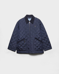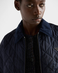 Elegance and technique come together: velvet details and metal snap-hook transform this blouson jacket into a distinctive garment with an urban character. - Product code: 292329_1WQ9_F0AIN_S_OOO - Unlined - Velvet collar - Long sleeves - Side slits - Straight cuff - Zipper closure - Patch pockets - Enameled metal triangle logo - Pressed garment - Metal snap-hook on pocket - Velvet collar and pocket trim - Imported - The model is 180 cm tall and wears a size 38 Height: 75cm MATERIALS Main material: 100% recycled polyamide